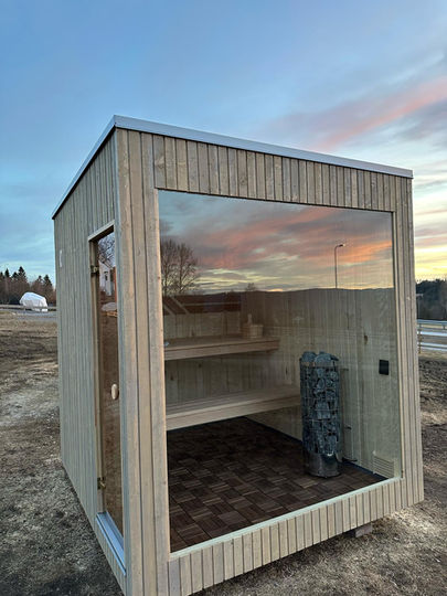 Opplev den ultimate avslapningen med vår eksklusive, ferdigmonterte badstue.