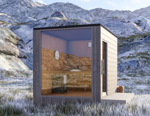 Designet for helårsbruk, gir denne kompakte, moderne saunaen deg en autentisk velværeopplevelse, enten du befinner deg på fjellet, i skogen eller i egen hage. Med panoramavindu får du en unik utsikt mens du nyter varmen – enten fra en vedfyrt ovn for en autentisk opplevelse, eller en elektrisk ovn for praktisk bruk og enkel temperaturkontroll.