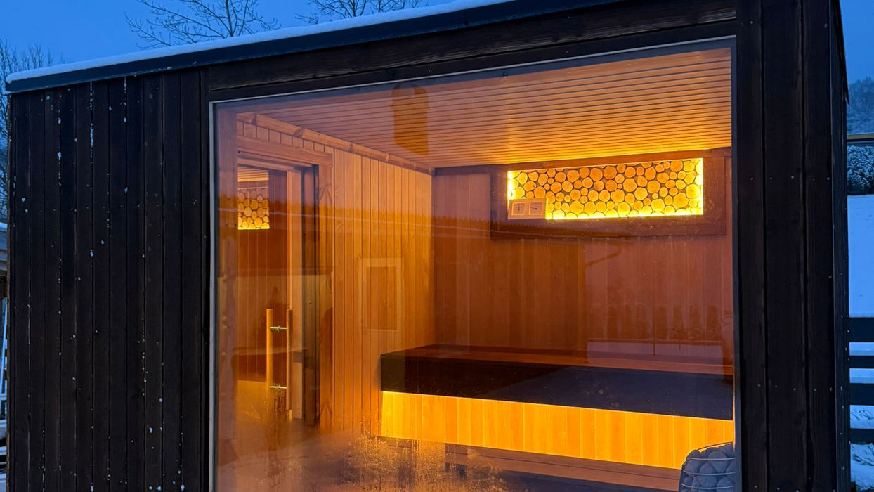 Eksklusiv badstue med panoramavindu – nyt naturen året rundt